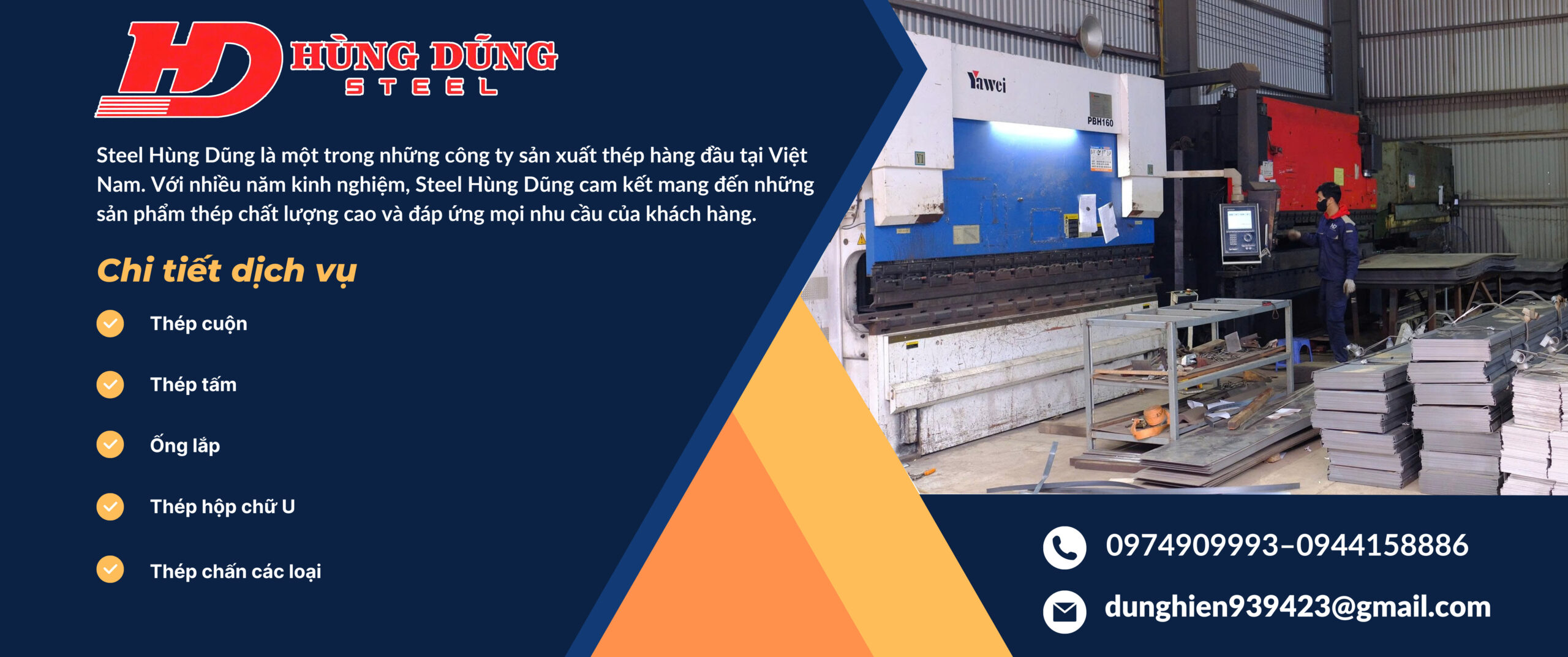 Steel Hùng Dũng là một trong những công ty hàng đầu trong lĩnh vực sản xuất và cung cấp sản phẩm thép tại Việt Nam. Với nhiều năm kinh nghiệm trong ngành, Steel Hùng Dũng đã khẳng định được thương hiệu của mình với chất lượng sản phẩm tốt, giá cả cạnh tranh và dịch vụ tận tâm, chuyên nghiệp. Công ty cung cấp đa dạng các loại sản phẩm thép như thép cuộn, thép tấm, thép hình, thép ống và các loại thép chấn, phục vụ cho nhiều ngành công nghiệp như xây dựng, sản xuất ô tô, đóng tàu, sản xuất máy móc và các ứng dụng khác. Steel Hùng Dũng cam kết đáp ứng mọi yêu cầu của khách hàng với sản phẩm chất lượng cao, thời gian giao hàng nhanh chóng và dịch vụ hậu mãi tốt nhất.